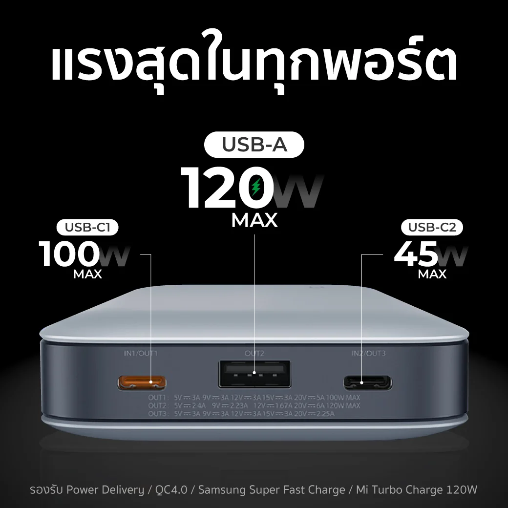 - USB-A Max 120W (เหมาะกับ Xiaomi 12 Pro ได้พอดี)