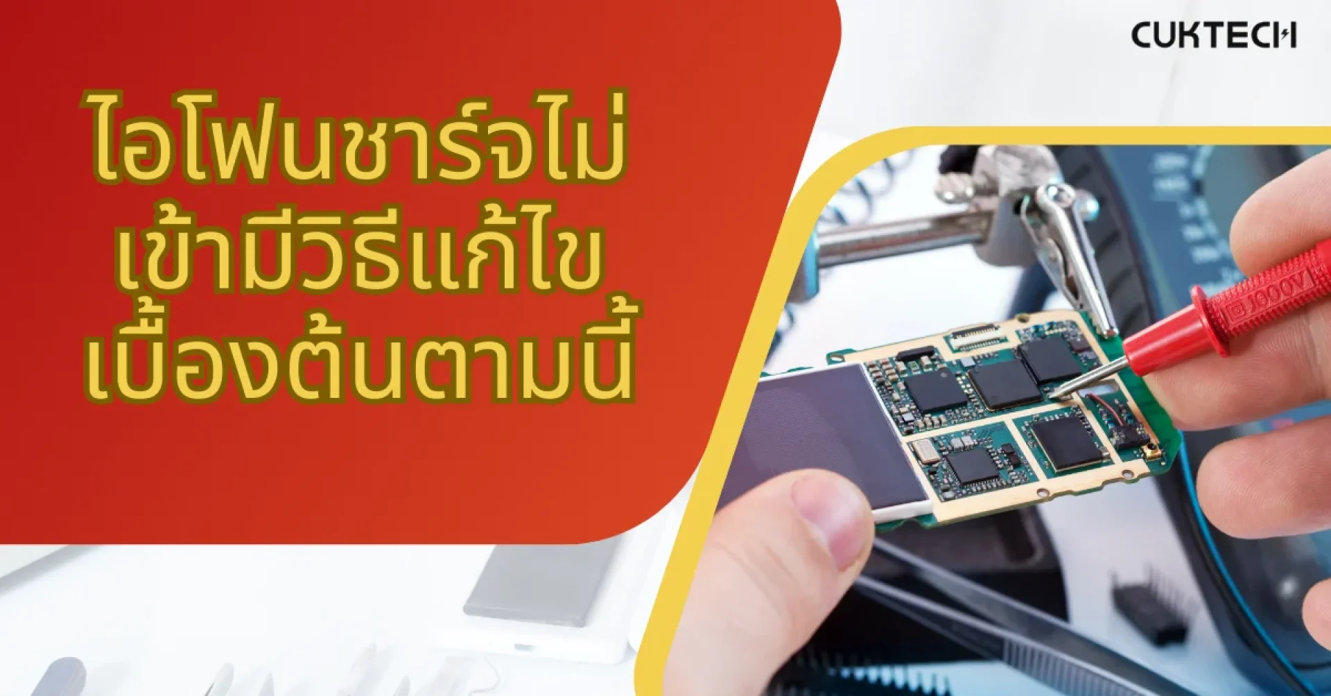 7.(ร้ายแรงสุด ถ้าไม่เคยทำตก/โดนน้ำ) อะไหล่ข้างในมีปัญหา: เช่น พอร์ตชาร์จหลวม/เสีย, ชิปควบคุมการชาร์จ มีปัญหา