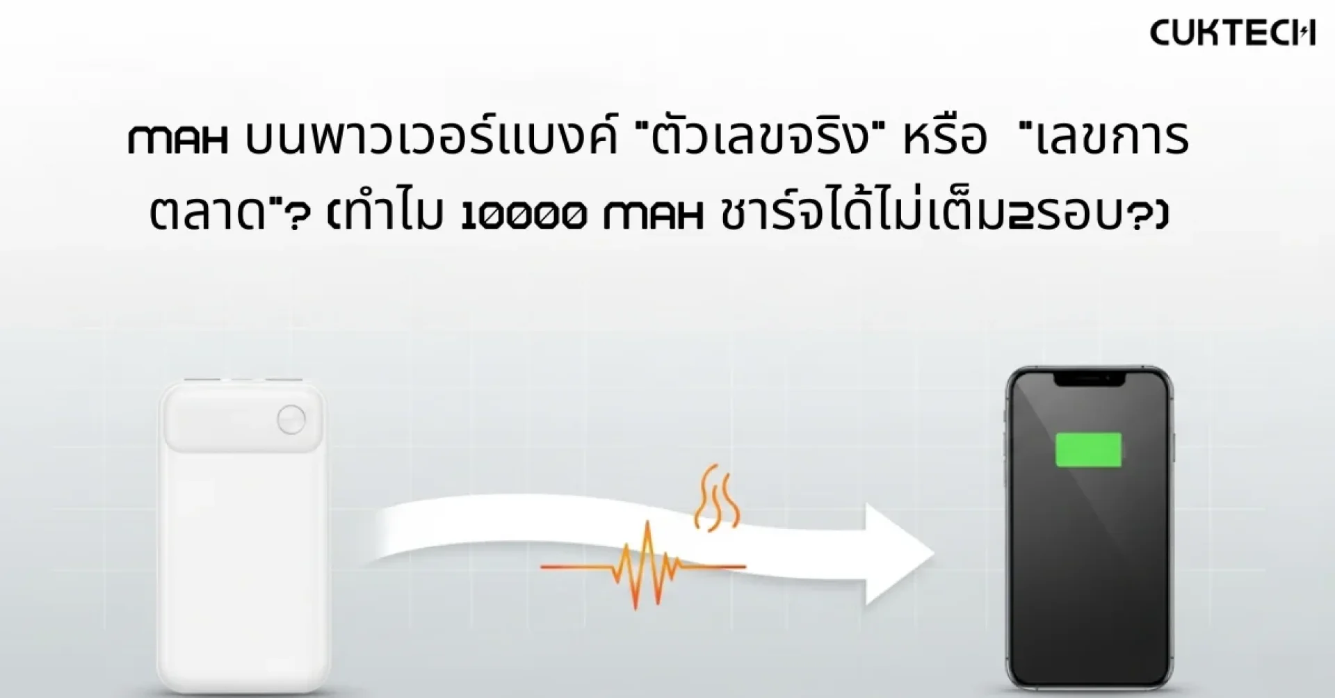 "ซื้อพาวเวอร์แบงค์มา 10,000 mAh คิดในใจเลขสวยๆ เลยว่า ต้องชาร์จมือถือแบต 4,000 mAh ของเราได้ 2 รอบครึ่งสบายๆ...แต่ทำไมพอใช้จริง ได้แค่รอบครึ่งก็หมดแล้ว!? ร้านค้าโกงเรา? หรือตัวเลขบนกล่องมันโม้?" เชื่อว่านี่คือคำถามคาใจอันดับหนึ่ง ที่สร้างความหงุดหงิดและสับสนให้กับคนใช้พาวเวอร์แบงค์แทบทุกคน!