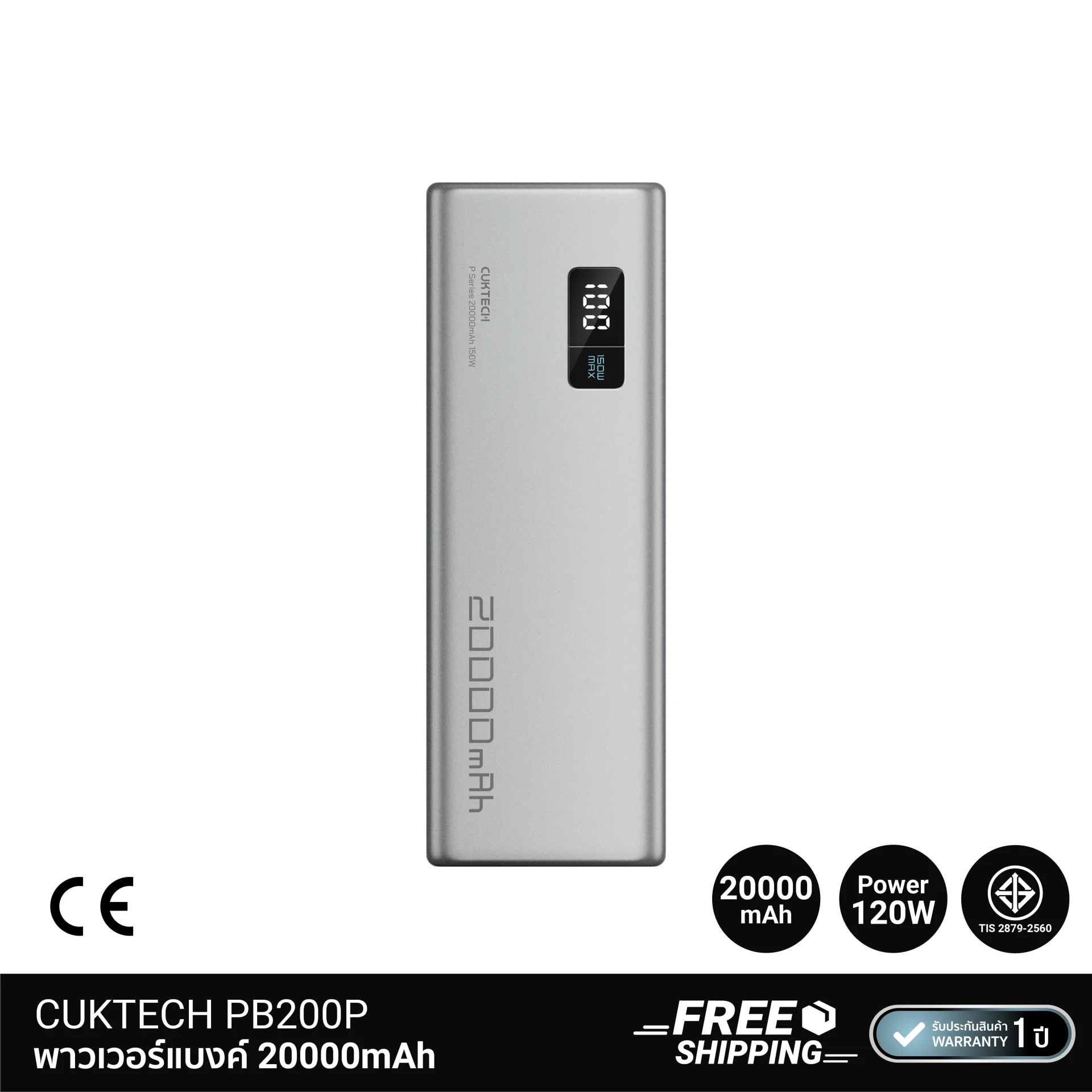 | CUKTECH PB200N / AURA PB200N | 55W | 20,000 mAh | ความจุเยอะ พกขึ้นเครื่องได้ เหมาะสำหรับเดินทางหลายวัน ขนาดกระทัดรัด มีสายชาร์จ USB-C ในตัว (ในบางรุ่นย่อย) ชาร์จ iPhone ได้ประมาณ 4 รอบ |