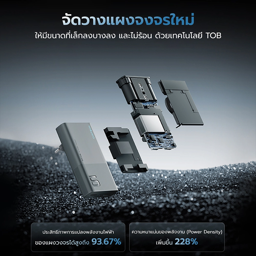- ไซส์เล็กแต่ทรงประสิทธิภาพ ด้วยขนาดเล็กกว่าหัวชาร์จ Apple 67W ถึง 41.9%