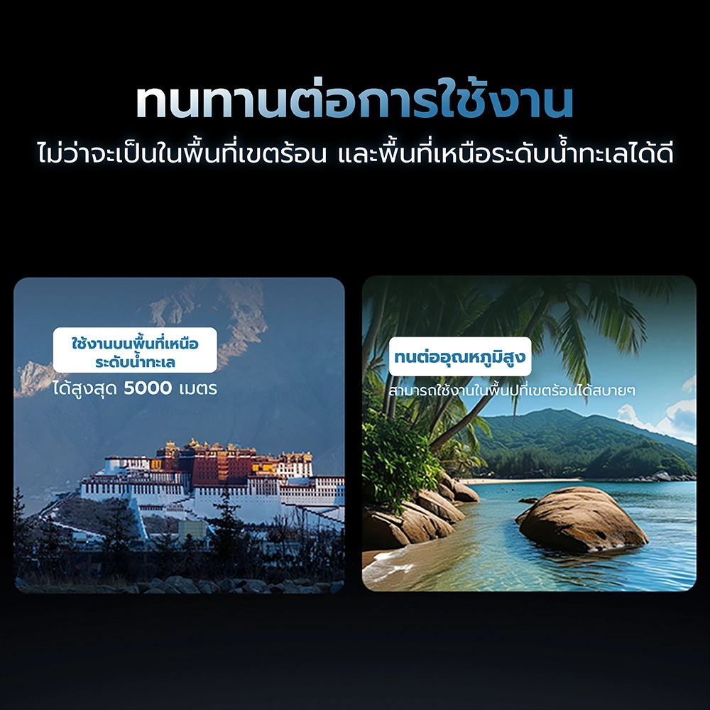 * ใช้งานบนพื้นที่เหนือระดับน้ำทะเล ได้สูงสุด 5000 เมตร