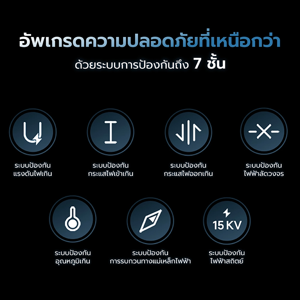 - ปลอดภัยทุกการชาร์จ ด้วยระบบตรวจจับอุณหภูมิถึง 36,000 ครั้ง / ชั่วโมง