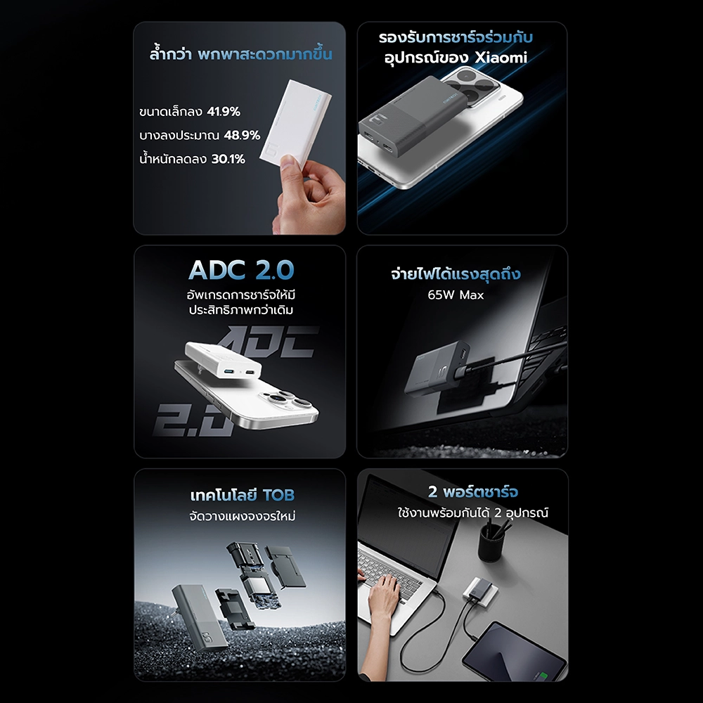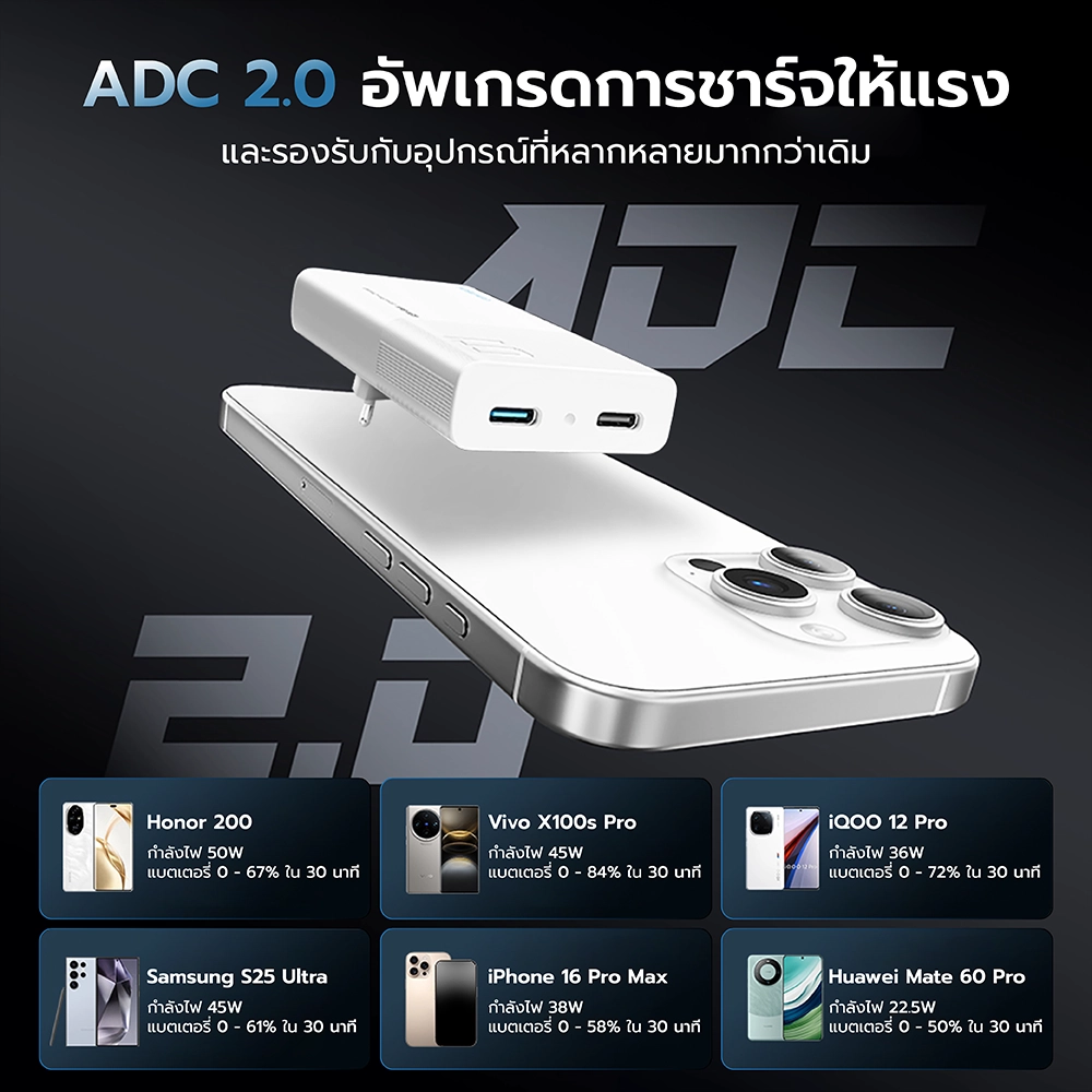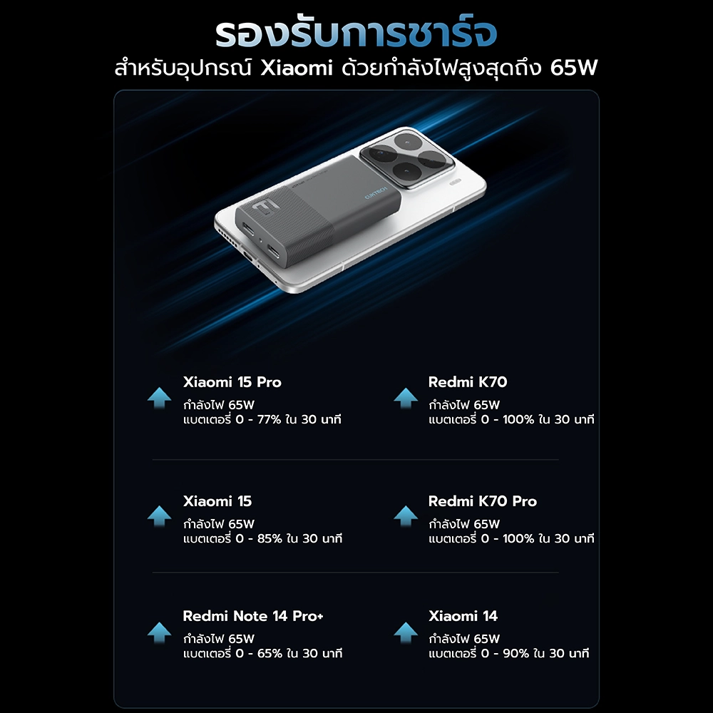 - รองรับเทคโนโลยีการชาร์จเร็ว PD3.0 , PPS, QC , SCP, MIPPS