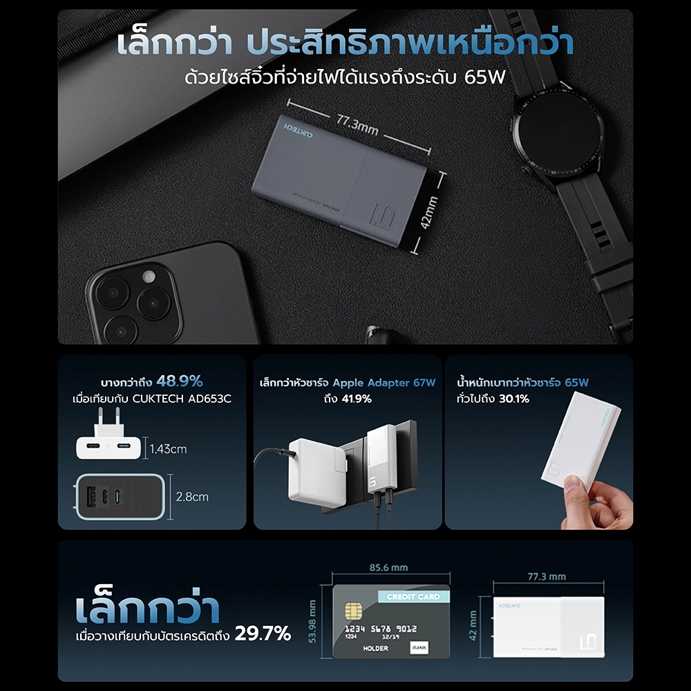 * CUKTECH 65W AD652S (77.3 x 42 x 14.3 มม.)