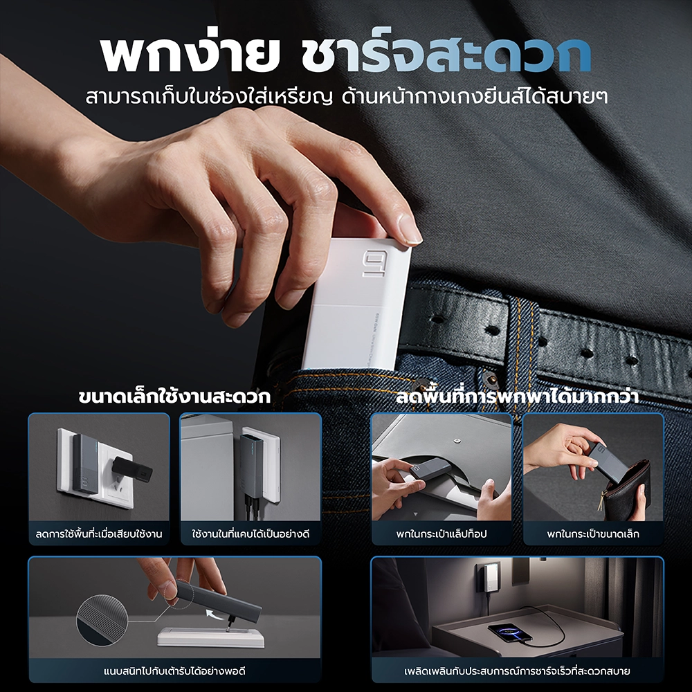 - พับขาปลั๊กได้ ช่วยให้ใช้งาน และพกพาในกระเป๋าได้สะดวก ไม่เกิดรอยขีดข่วน