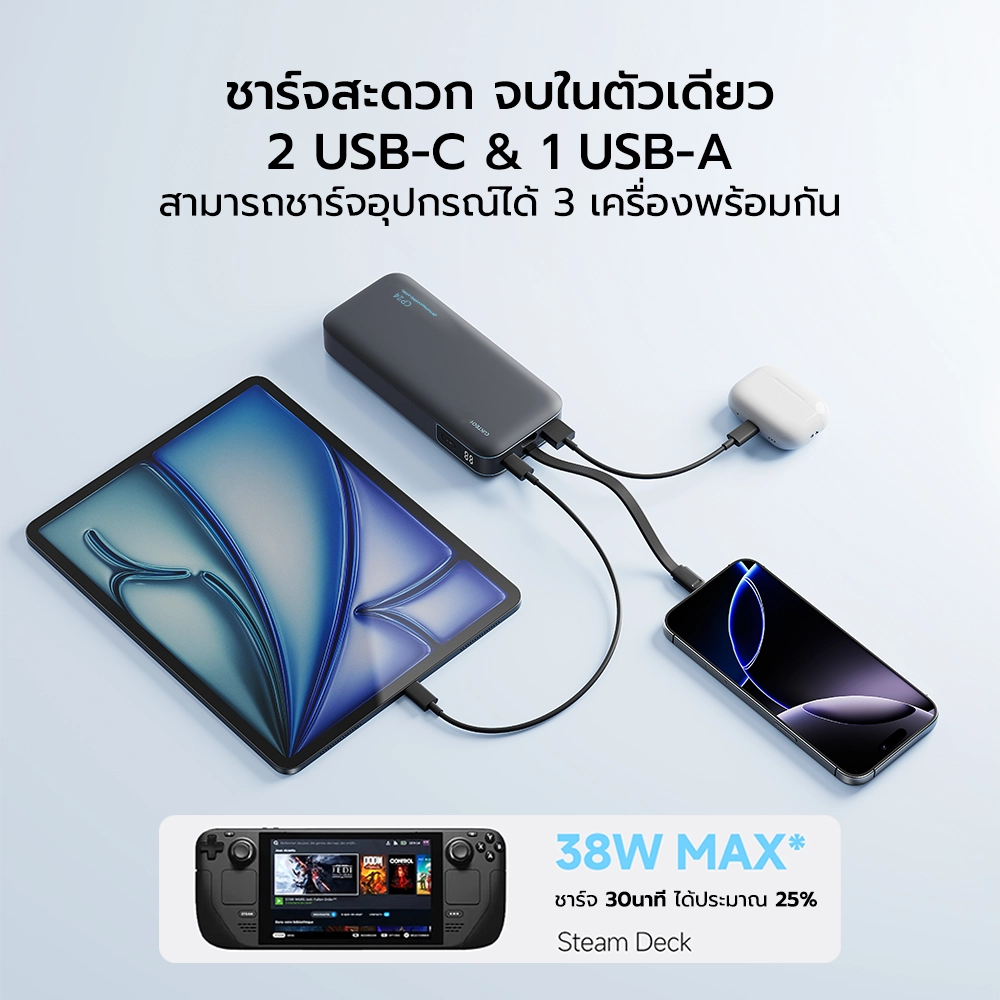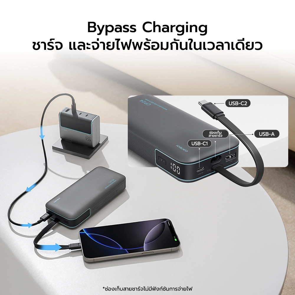 * กำลังไฟต่อพอร์ต USB-C 40W / USB-C Cable 40W / USB-A 33W