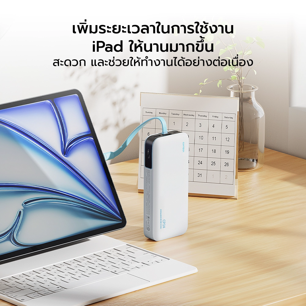 - ชาร์จไฟเข้ากำลังไฟสูงสุด 40W รวดเร็วกว่าแบตสำรองยุคเก่าถึง 3 เท่า