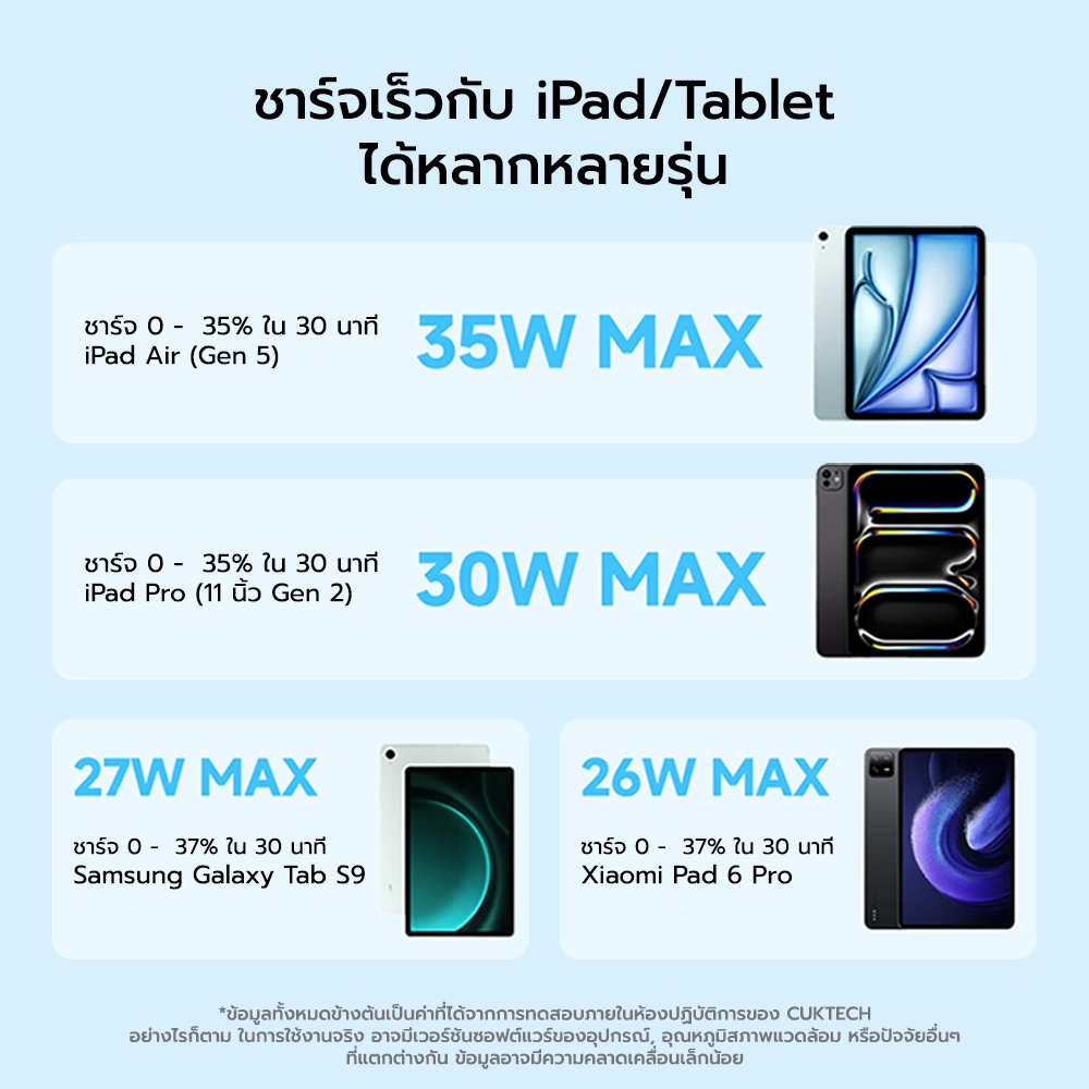 * ชาร์จ iPad Air Gen 5 30 นาที ได้แบตเตอรี่ 35%