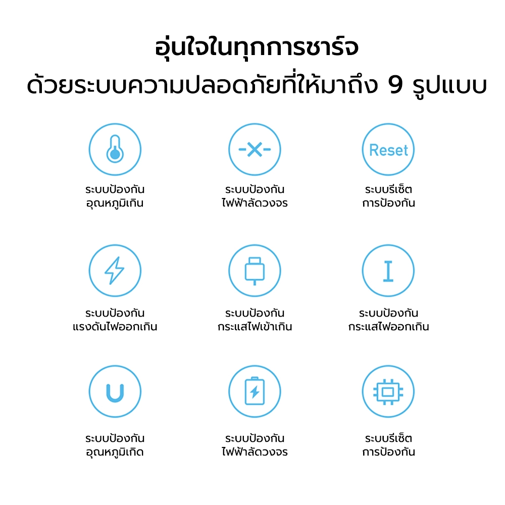 - อุ่นใจในทุกการชาร์จ ด้วยระบบความปลอดภัยถึง 9 รูปแบบ