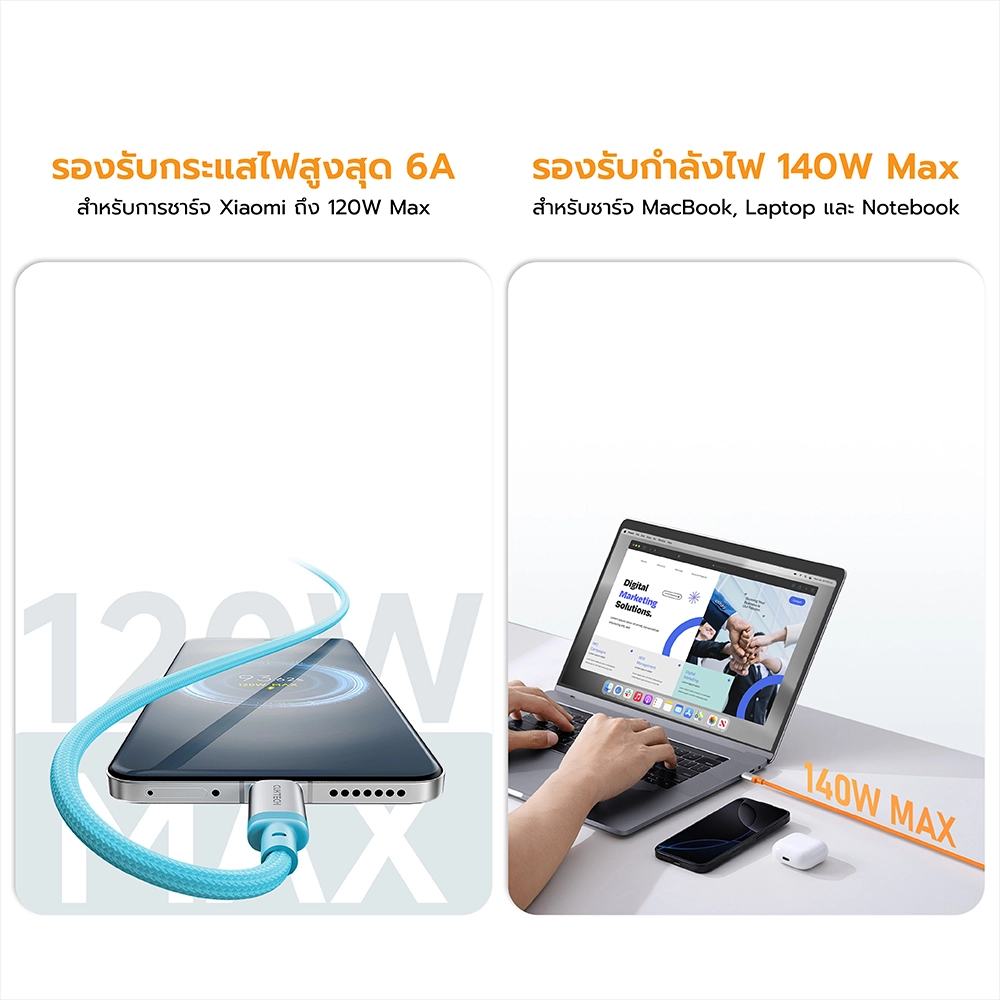 - กำลังไฟ 140W Max สำหรับ MacBook , Laptop และ Notebook