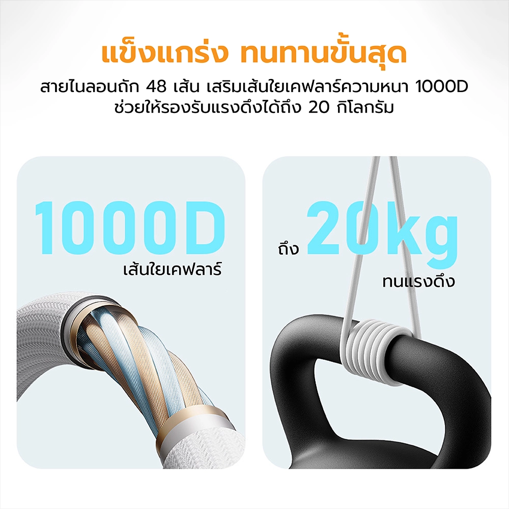 * สามารถทนต่อแรงดึงได้สูงสุดถึง 20 กิโลกรัม