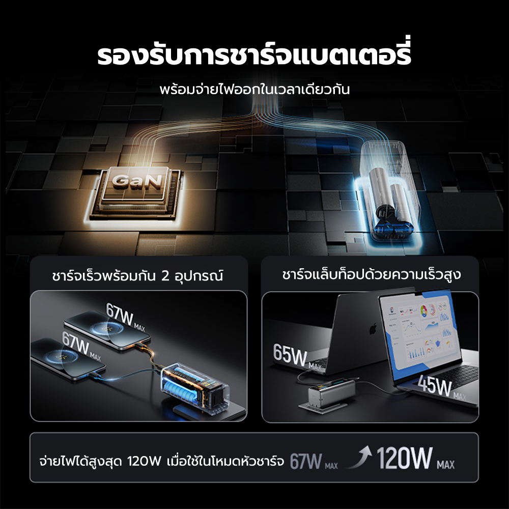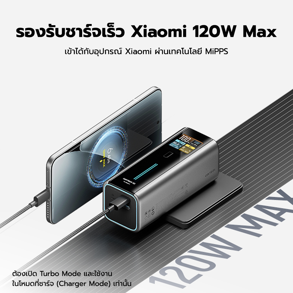 - Turbo Mode ในการใช้งานแบบหัวชาร์จ จ่ายไฟได้แรงสุดถึง 120W Max