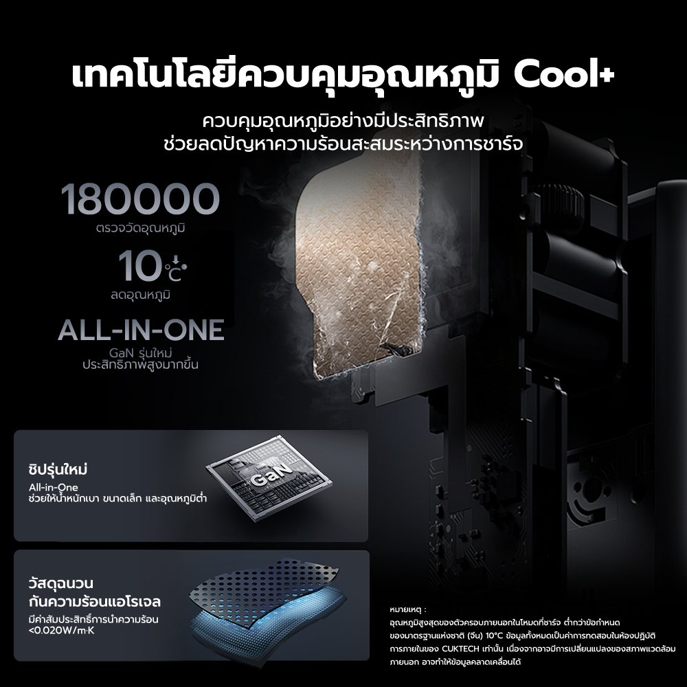 * ใช้ชิป GaN ช่วยให้น้ำหนักเบา ขนาดเล็ก และอุณหภูมิต่ำลง