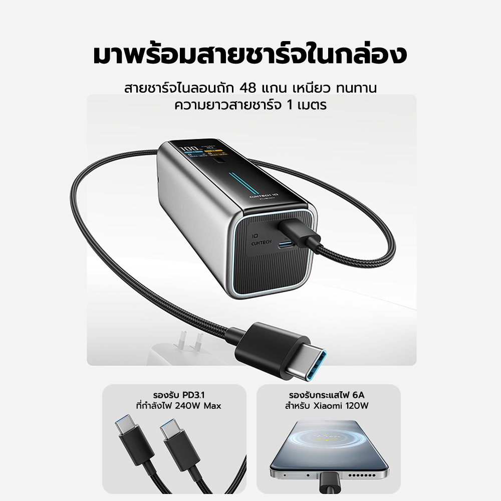 * 6A 240W รองรับ PD3.1 ความยาวสายชาร์จ 1 เมตร
