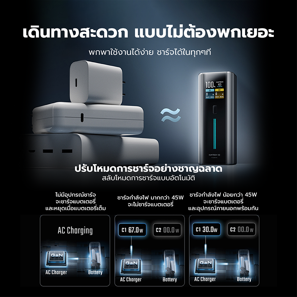 - ปรับโหมดการชาร์จอย่างชาญฉลาด สลับโหมดการชาร์จแบบอัตโนมัติ