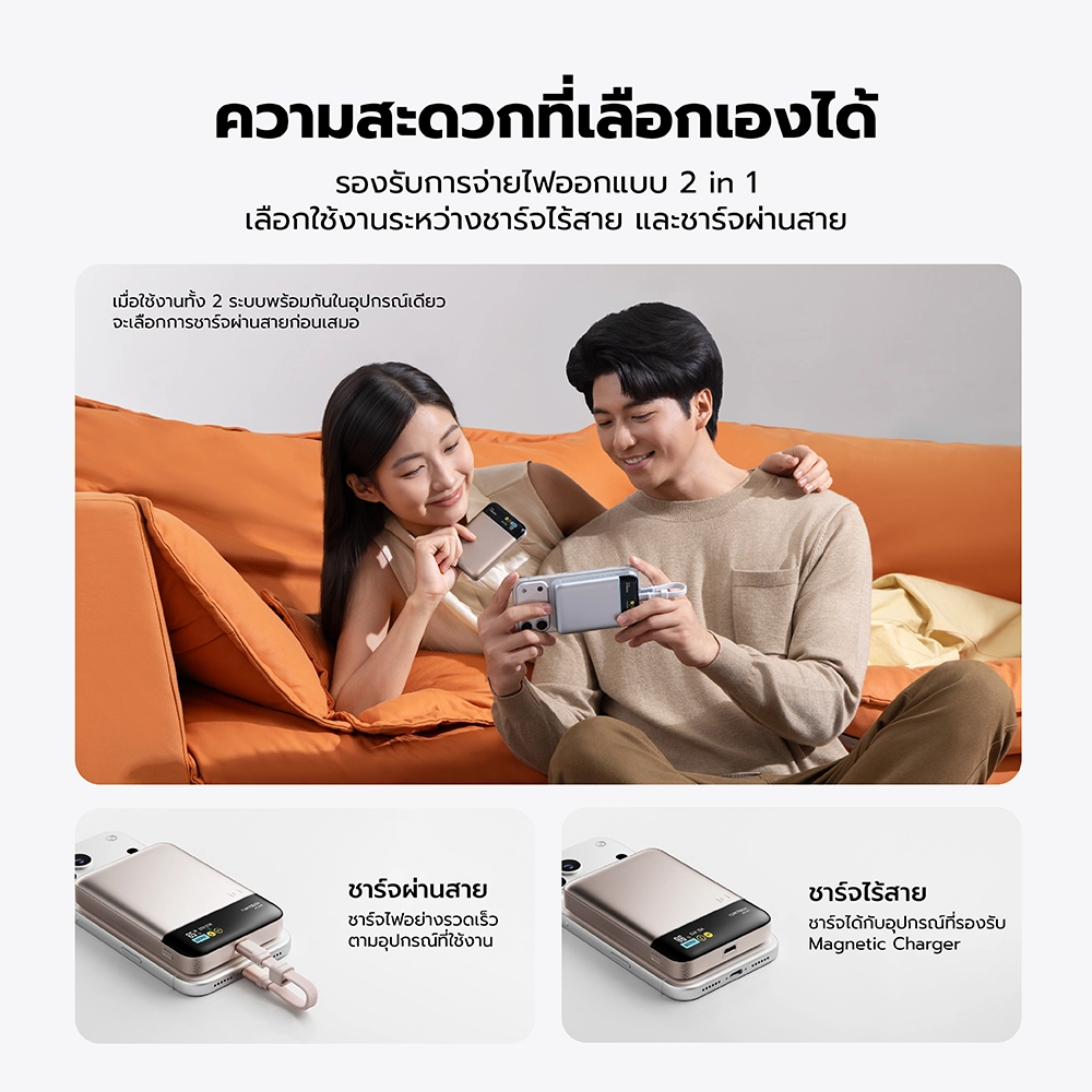 - 2 in 1 ความสะดวกในการชาร์จ ที่สามารถเลือกใช้งานได้ตามต้องการ