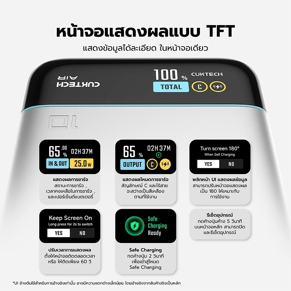 * แสดงผลการชาร์จ สถานะการชาร์จ และการปรับโหมดใช้งานต่างๆ