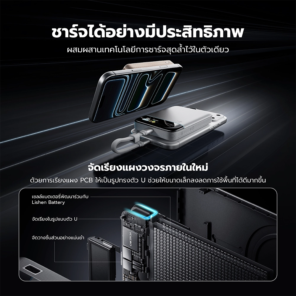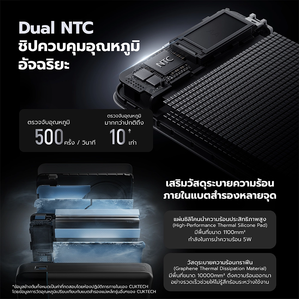 - ควบคุมอุณหภูมิอัจฉริยะ เสริมวัสดุระบายความร้อนภายในแบตสำรองหลายจุด