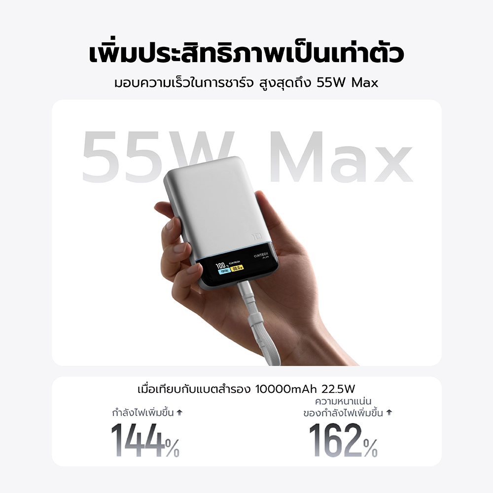 - เพิ่มประสิทธิภาพการชาร์จเป็นเท่าตัว จ่ายไฟออกสูงสุด 55W Max