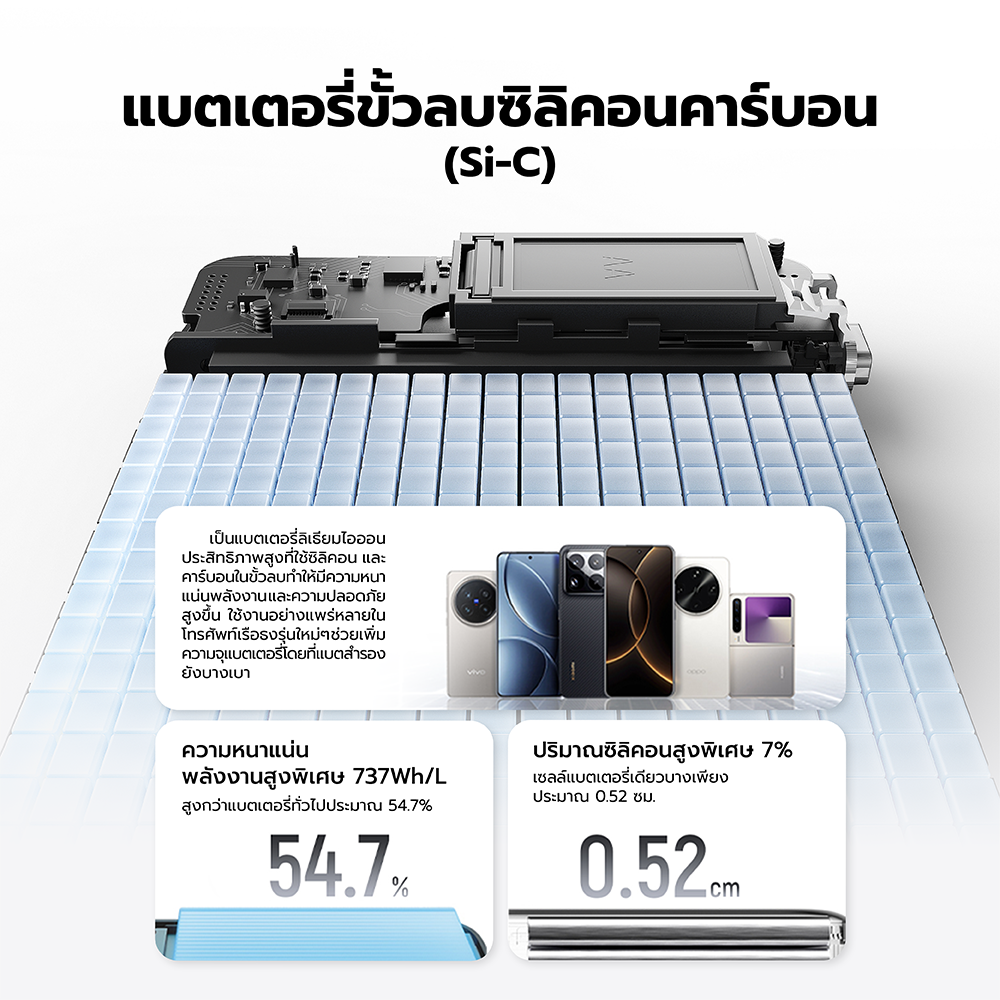 - แบตเตอรี่ขั้วลบซิลิคอนคาร์บอน (Si-C) ช่วยให้ความจุของแบตเตอรี่สูงขึ้น