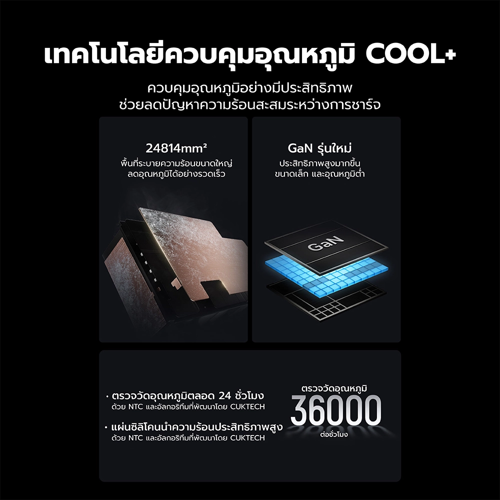 - เทคโนโลยีควบคุมอุณหภูมิ Cool+ หมดปัญหาเรื่องความร้อนสะสมระหว่างชาร์จ