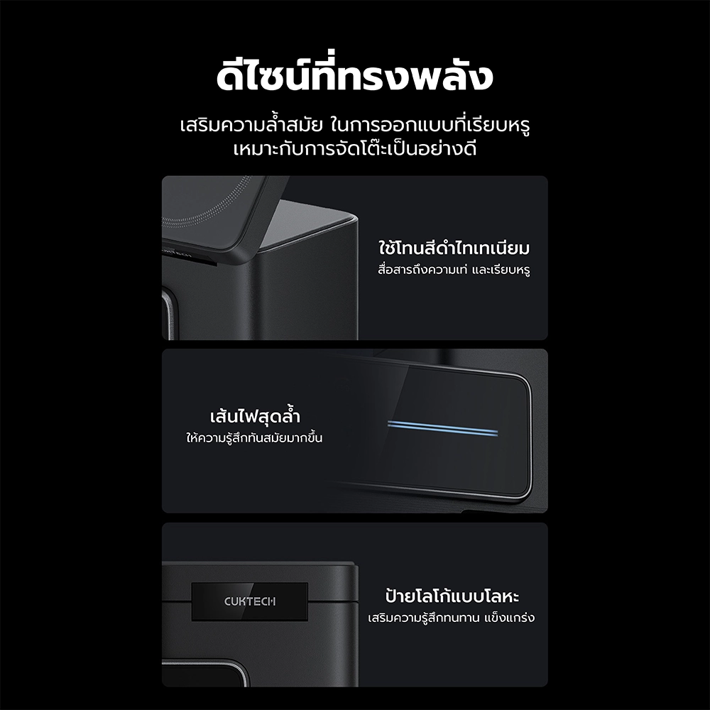 - ดีไซน์สวย ดูทรงพลัง เสริมความล้ำสมัยให้กับโต๊ะทำงานได้อย่างลงตัว