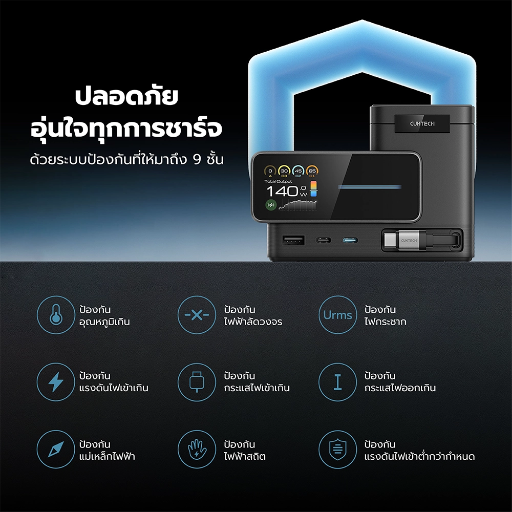 - ปลอดภัย อุ่นใจในทุกการชาร์จ ด้วยระบบความปลอดภัยที่ให้มาถึง 9 รูปแบบ