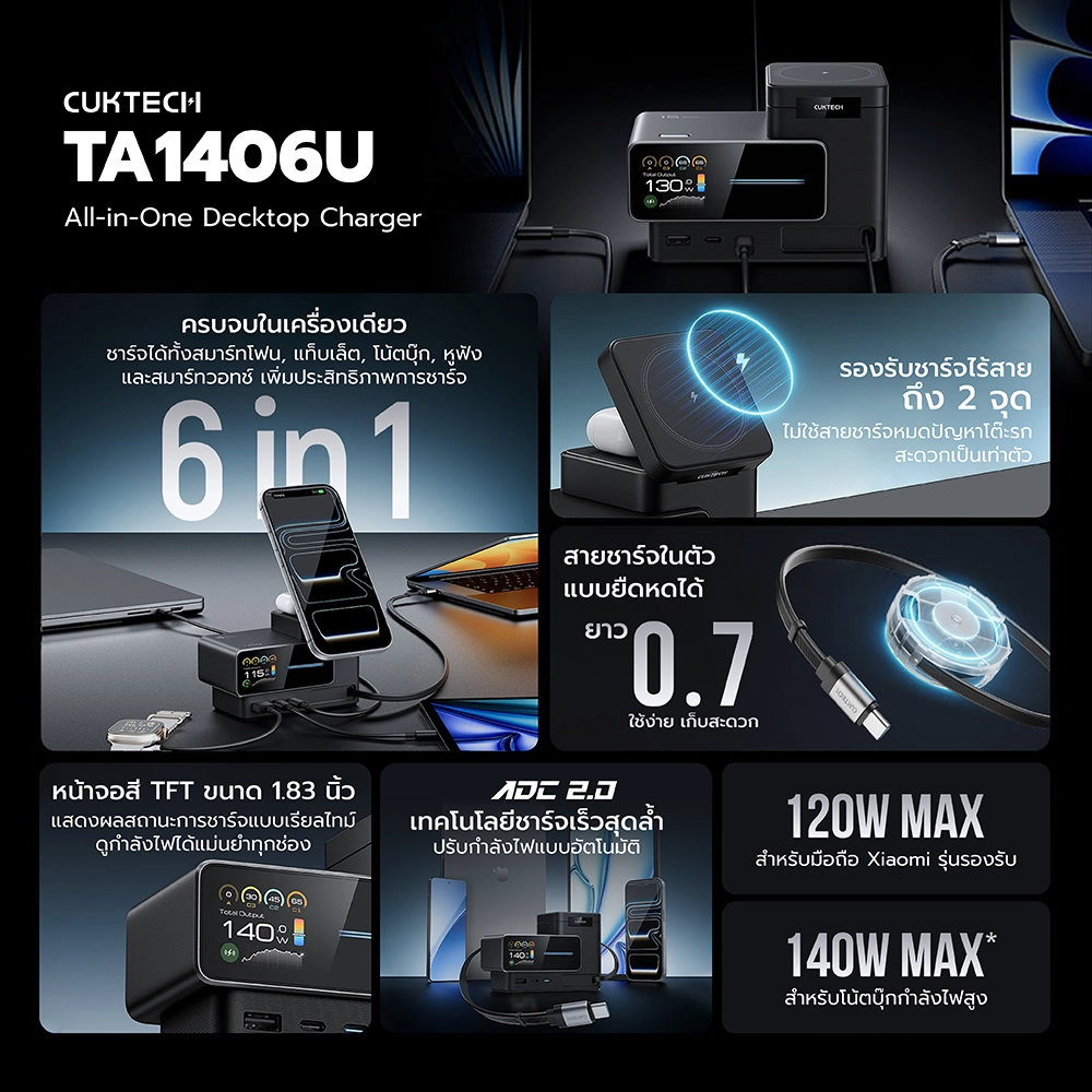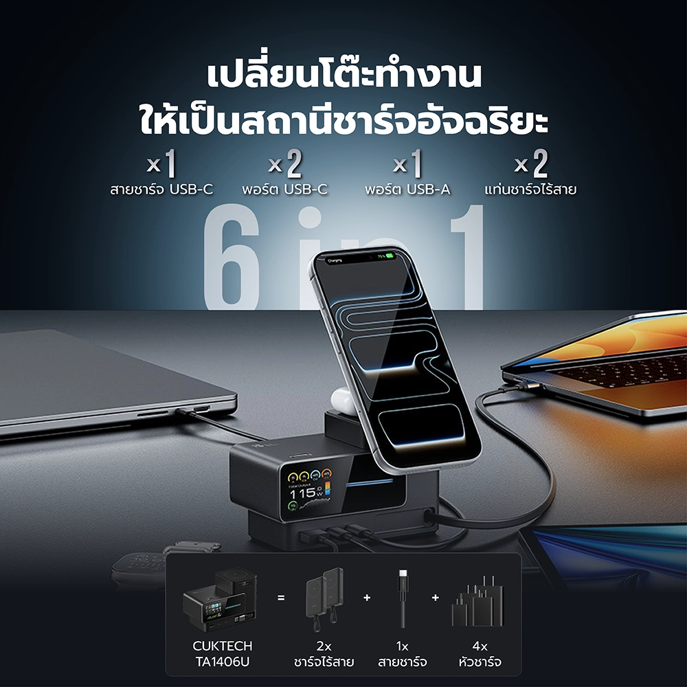 - เปลี่ยนโต๊ะทำงาน ให้เป็นสถานีชาร์จอัจฉริยะแบบ 6 in 1 ครบจบในตัวเดียว