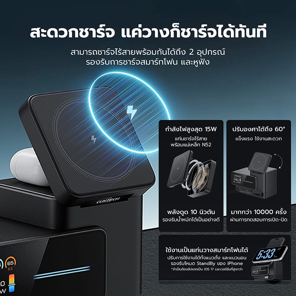 Output Ports: 1x สายชาร์จ USB-C / 2x USB-C / 1x USB-A / 2x แท่นชาร์จไร้สาย