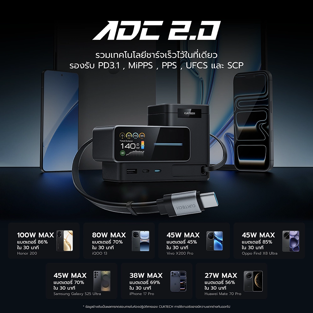- ADC 2.0 รวมเทคโนโลยีชาร์จเร็ว PD3.1 , MiPPS , PPS , UFCS และ SCP