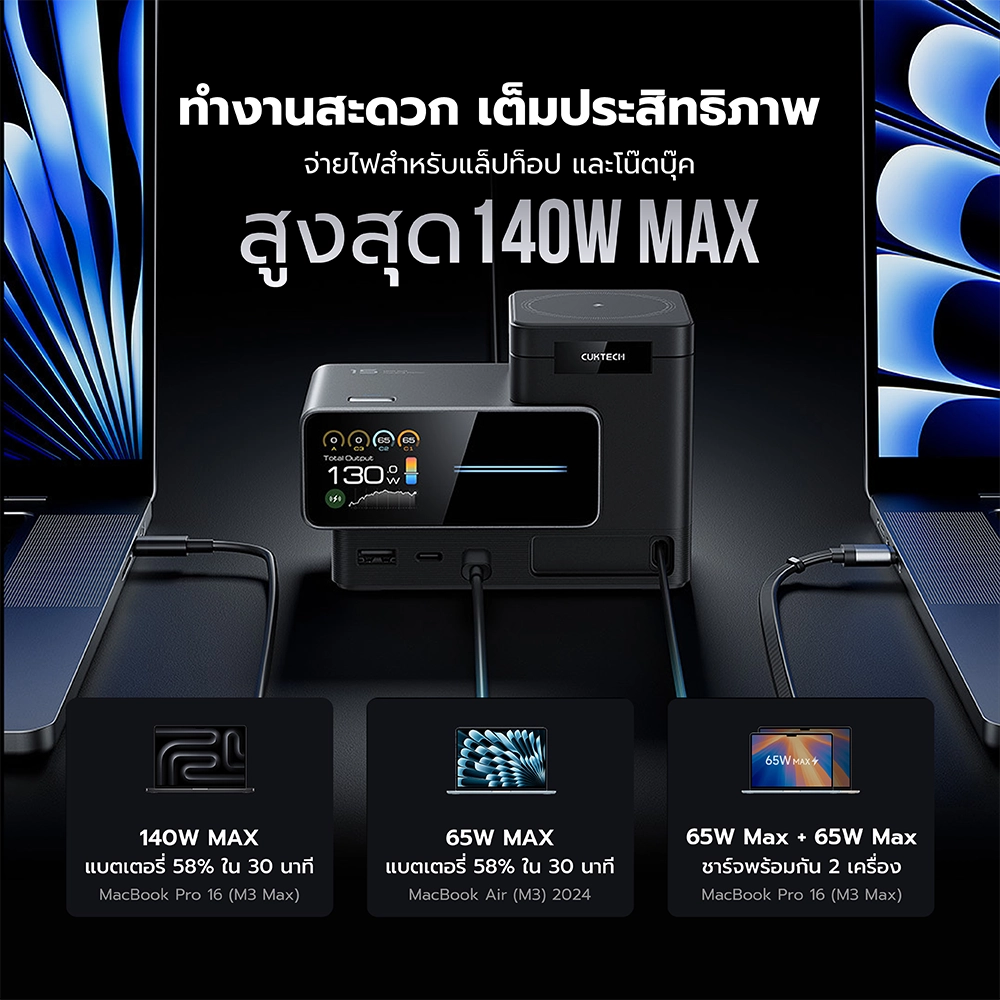 - รองรับการชาร์จเร็ว 140W รองรับเทคโนโลยี PD3.1 สำหรับ MacBook Pro